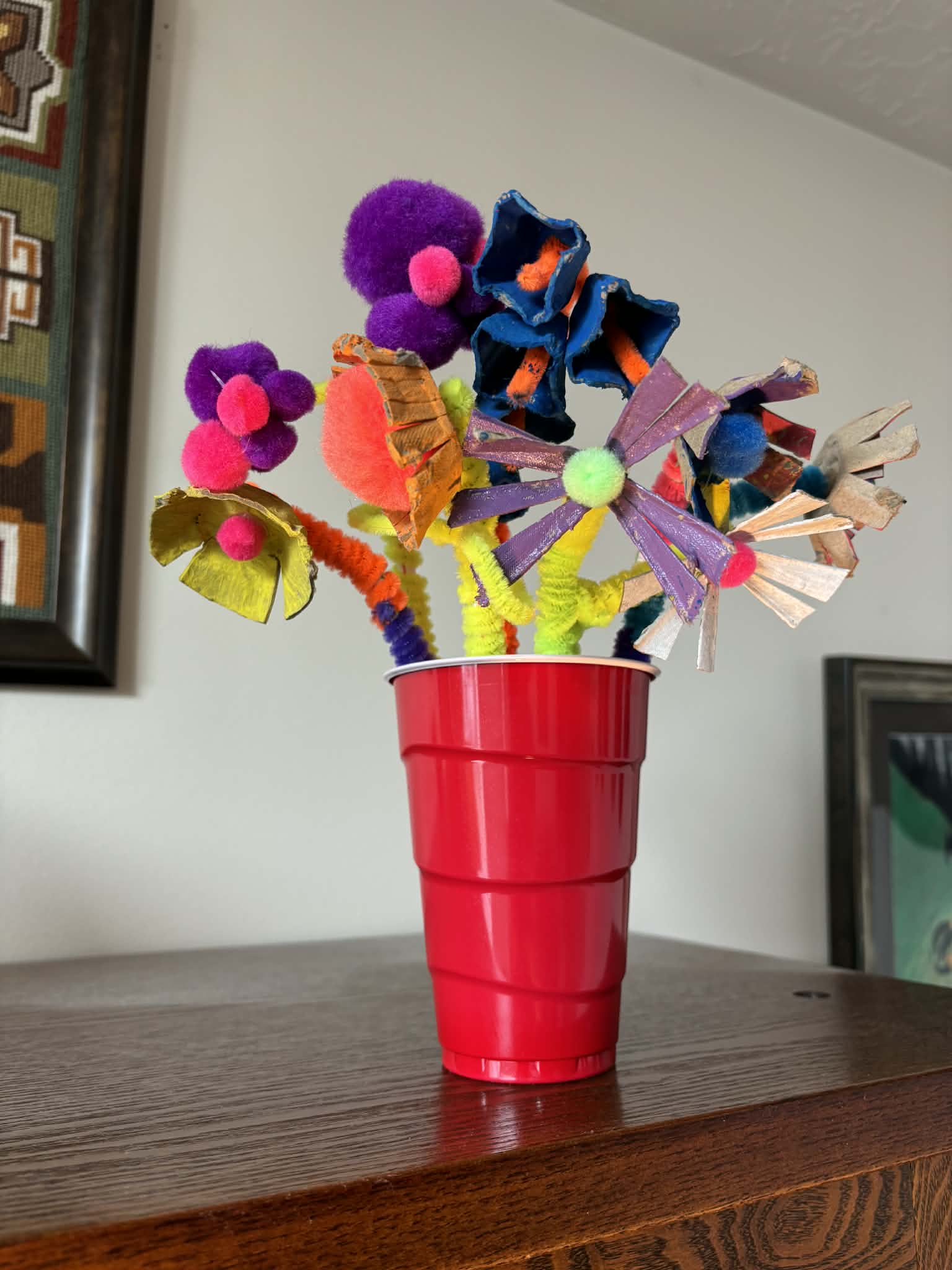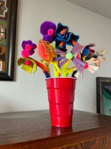 (Pictured: homemade flowers made by Henry and Adelaide for their grandpa during his convalescence.)
