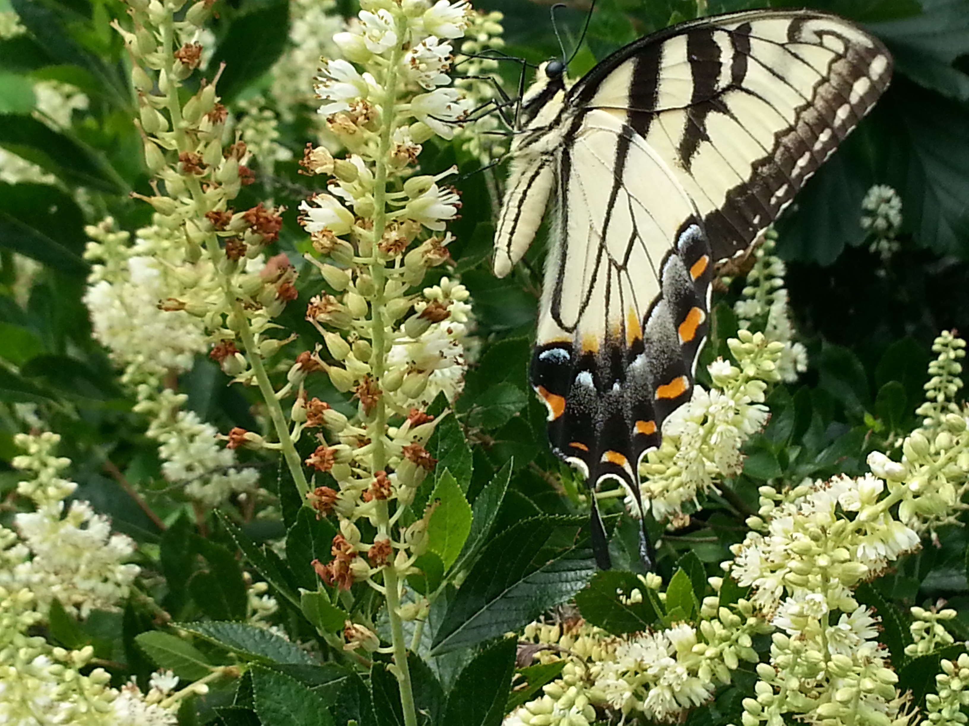 I watched a battered Tiger Swallowtail fly awkwardly from flower to flower, clinging precariously from its remaining feet, its tails cracked and broken.  How sad, I thought, that this usually stunning butterfly has lost its beauty.  Only later did it occur to me that the swallowtail had lost nothing of real beauty.  It lived on, though battered by storms, by would-be predators.  What it had lost in glamour it had gained in strength and nobility.  And it still commanded the air.  It still indulged in the sweetness of life.  This poem celebrates the swallowtail.