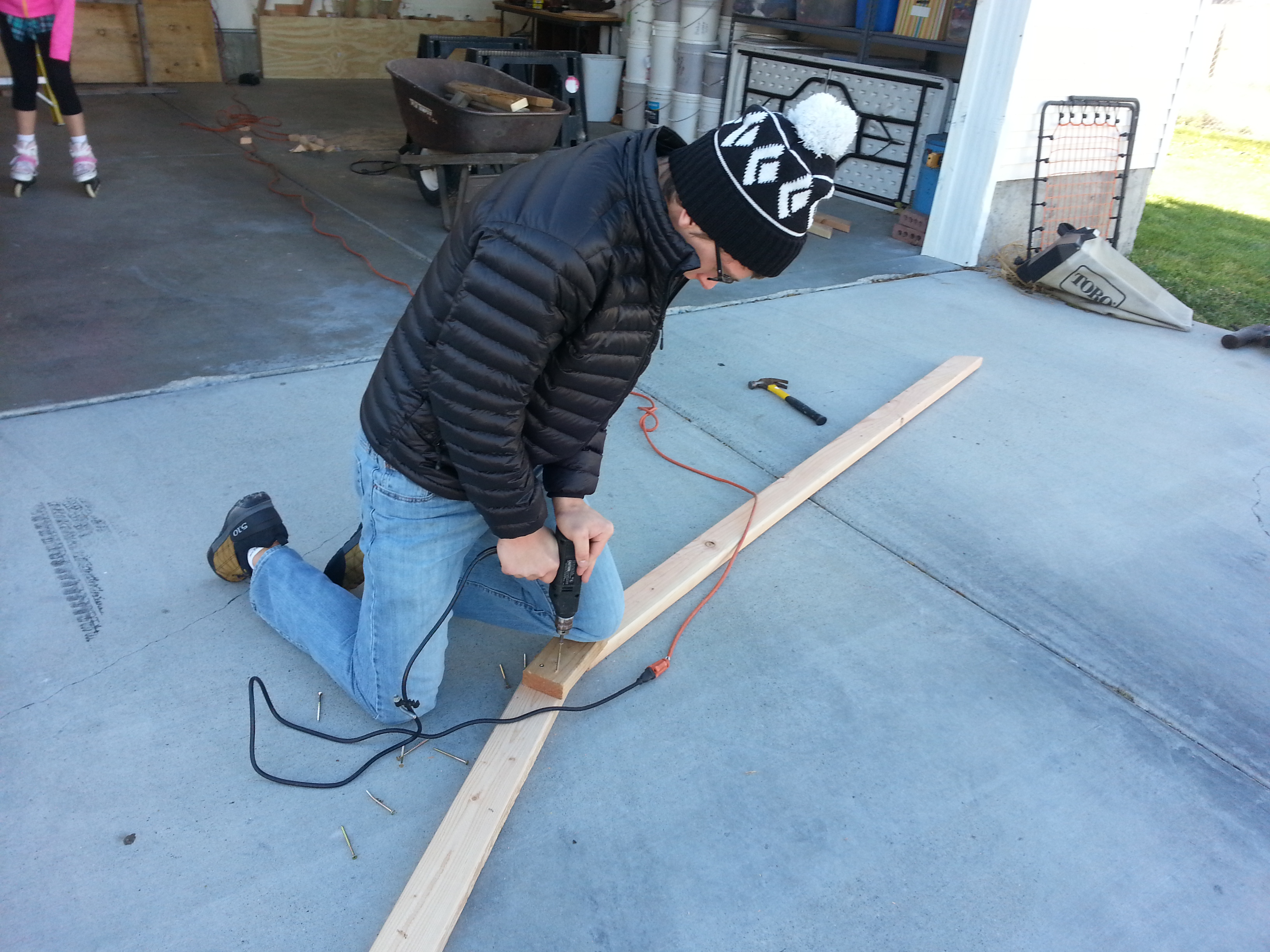 Caleb used his great-great-grandfather Baker’s plane to shave off one corner of the 2×4 rungs so that they would be parallel with the ground, or angled slightly inward, making it possible to grasp with the fingertips.  I felt proud of Caleb for working so hard to bring his holiday plan to fruition, but mostly for wanting to make a meaningful Christmas gift for his brother.