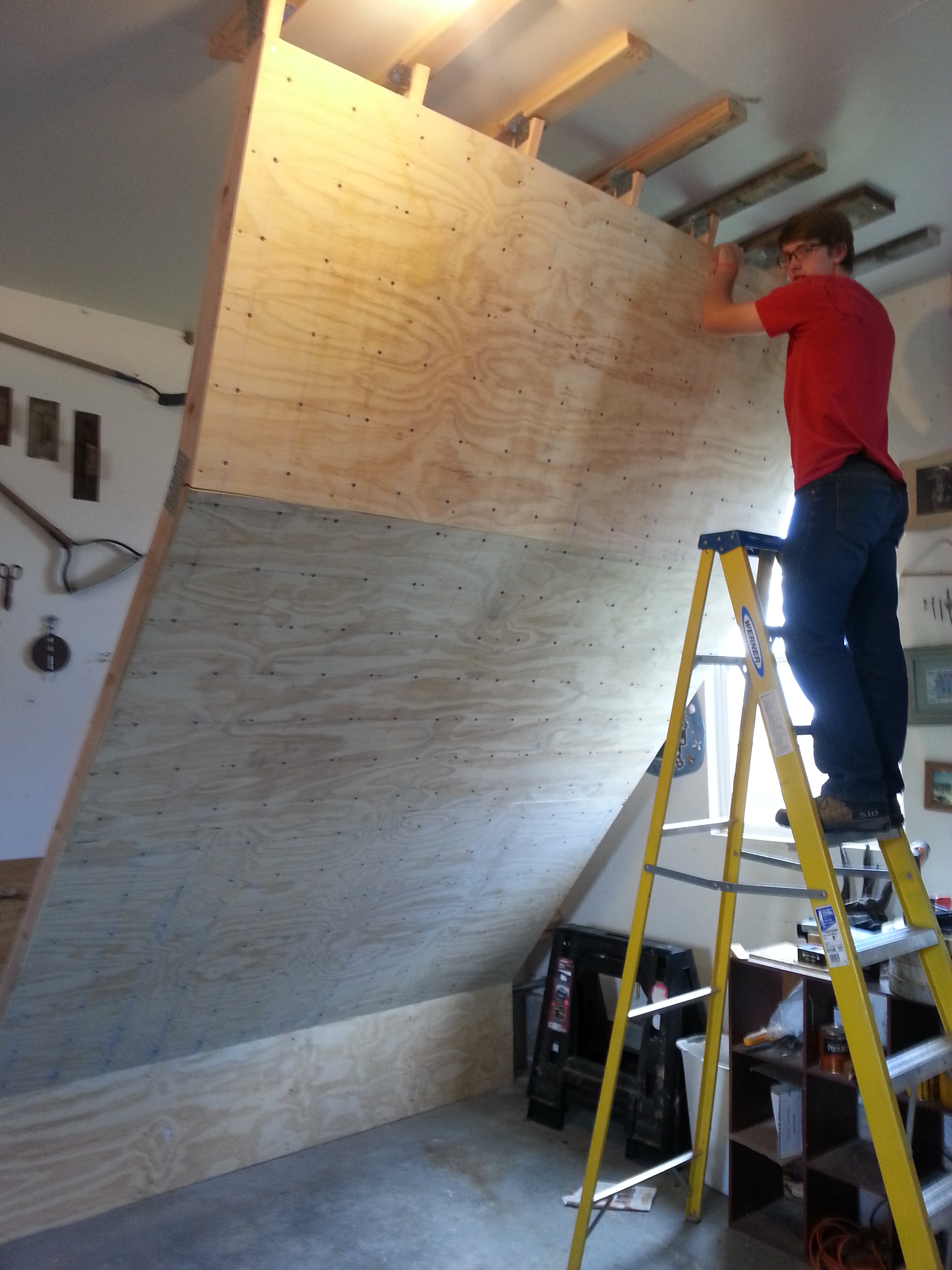 For my son John’s 17th birthday he asked me to help him engineer and construct a climbing wall in our garage.  That was the gift he wanted from me, his father.  I let out a heavy sigh, knowing, as a lawyer, my engineering limitations.  I write contracts and ordinances.  I don’t build things.  But I couldn’t disappoint him.  Testing his commitment to project, I promised I would help him if he did all the research.  He spent hours on the internet compiling a book of various designs and techniques.  He had done his part, so now it was time to do mine.