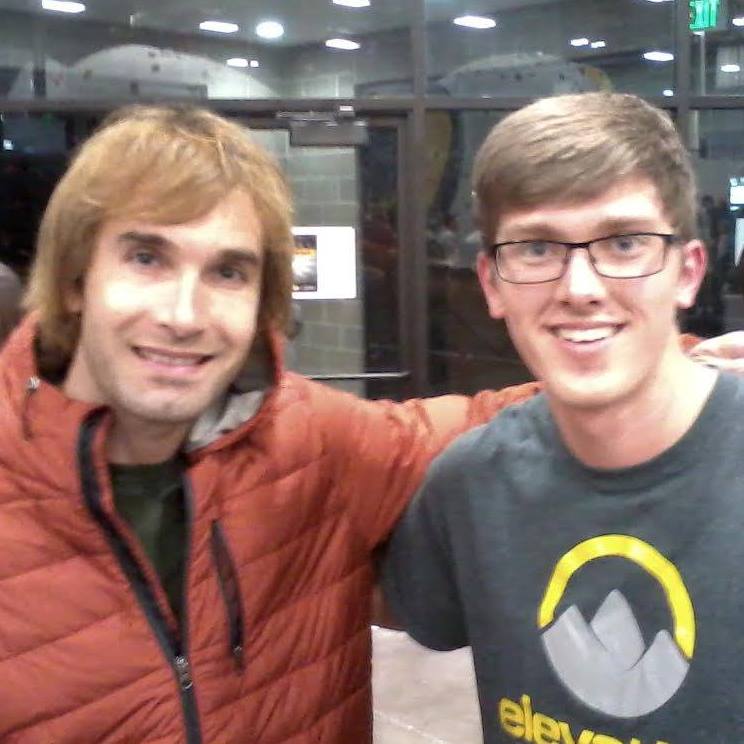 Building this climbing wall with my son John, though intimidating to me at first, turned out to be a most meaningful experience for us both.  We enjoyed working through the design and construction challenges together.  John learned that he can dream and make his dreams come true.  He, his brothers Caleb and Hyrum, and his friends spend hours in my garage bouldering through the various “problems” John has set.  Just one year after completing his climbing wall, John off on a month-long NOLS (National Outdoor Leadership School) course learning real-life leadership and climbing skills.  He dreams of following in the footsteps of climbing heroes Alex Honnold and Chris Sharma.  John is pictured with Chris here.