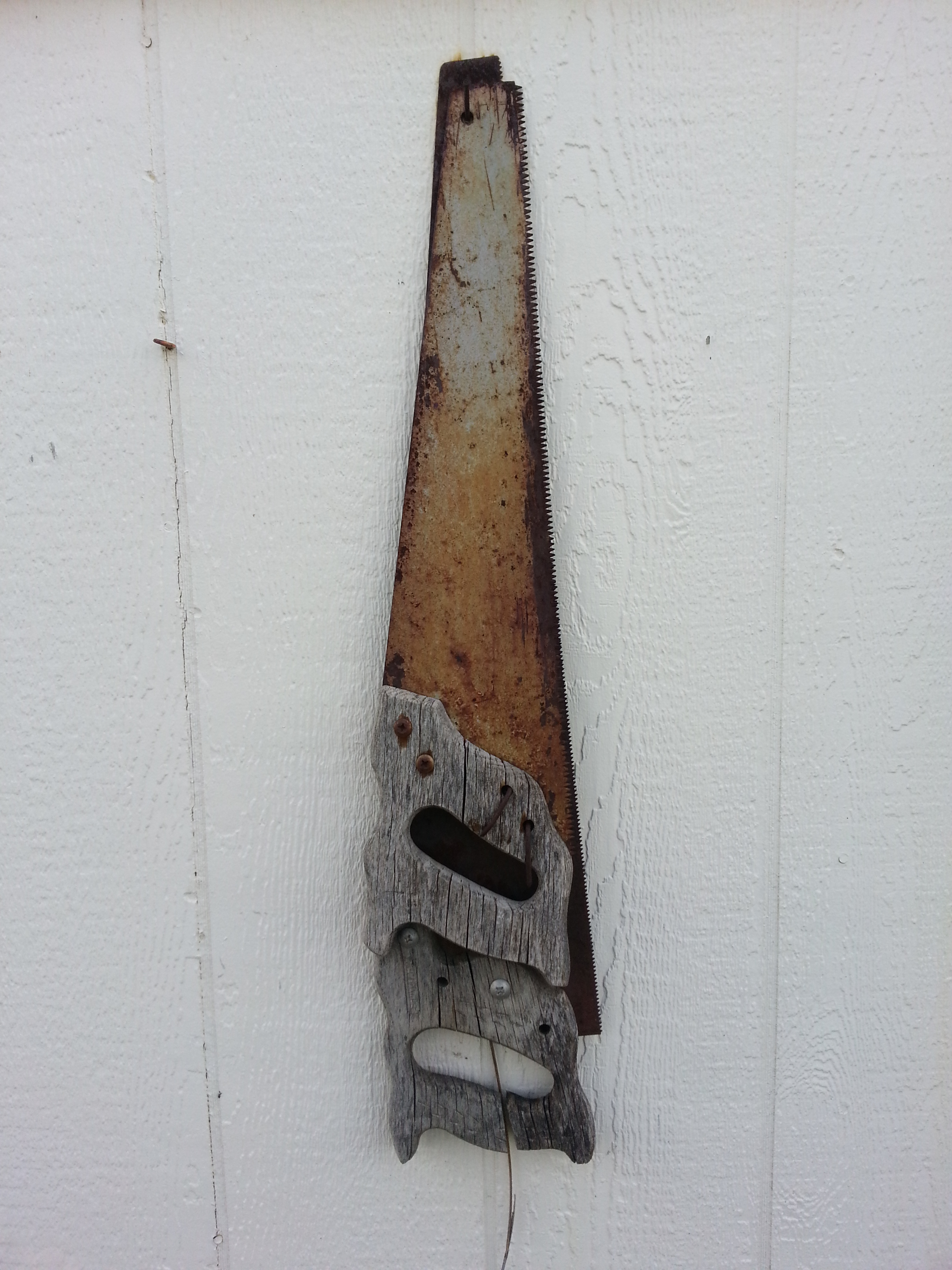The piece of driftwood that became the lamp Grace leaned against my shed for about a decade, a temporary decoration with which I might do something someday. It joined my other decorations, antiques, hanging from the shed by nails, though the wood lay on the ground, frequently obscured by weeds and grass.