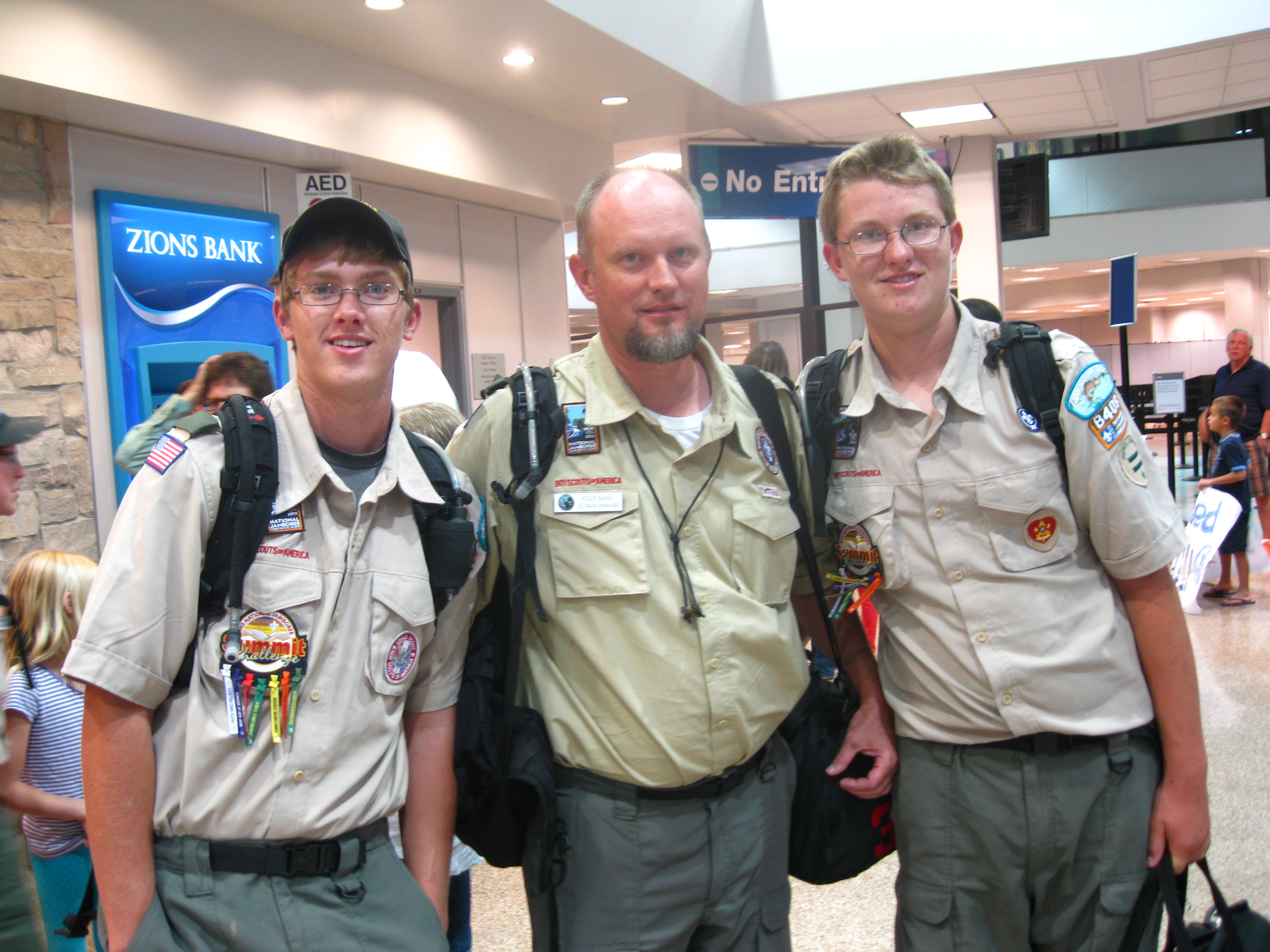 Not just my sons have raised money for the National Boy Scout Jamboree. I join them in both the fund-raising and the scouting efforts. I attended in 2013 as an assistant scoutmaster, one of four men accompanying a troop of 36 Boy Scouts. I will attend again in 2017 in the same role. I am pictured here with my sons John and Caleb, in the Salt Lake City International airport, exhausted but happy after our three-week adventure.