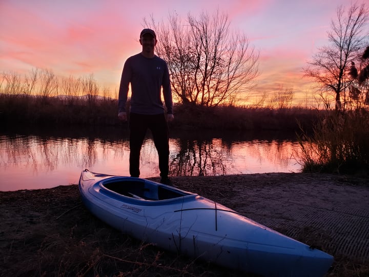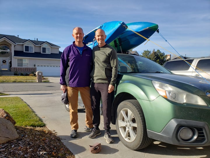 On possibly the last warm day of the quickly-coming winter, the Jordan River tugged at me to bring my kayak and glide. My solitary jaunts on the Jordan have brought a mystical connection with nature. On this paddle, my brother Steven joined me, in town for a visit, and we set off with our boats racked on my green Subaru. Mom and Dad sat in camp chairs in the driveway, wrapped in winter coats, waiving as we pulled away. We launched and paddled three miles against the invisible current, our muscles burning. My buff brother remarked, “My muscles are saying, ‘What’s going on here? We don’t recognize this exercise!’” I had hoped to introduce Steven to my friend the belted kingfisher, who did not disappoint, and who chittered chidingly at us from his perch. To our wonder and delight, he dove and brought up a silver flash that disappeared down his gullet. He kept his eye on us as he flew short stretches upstream, until we reached the end of his territory and he flew overhead back downstream. Steven is a strong paddler, and we glided side by side, except when navigating around the many submerged snags. We talked about the scientific fact of our perfectly ordered universe, which follows precise laws of creation and evolution and entropy, and about how scientists, unable or unwilling to acknowledge a Deity behind it all, posit one of two explanations for this perfect order, the first being a multiverse in which an infinity of flawed universes come into and out of existence, with the probability that eventually infinity will produce one stable perfectly ordered universe, the one in which we live (fortunately for us), and the second being an elaborate illusion designed by supremely intelligent beings, an illusion in which our universe is perfectly ordered—and I ask rhetorically, why would beings intelligent enough to create such a perfect illusion even need to do so, because if they were capable of creating a perfect illusion, would not they be equally capable of creating a perfectly ordered reality, like the one we have? And all of this to get around the rather simple explanation of a God, of infinite beneficence and knowledge of the laws of nature, using those laws to create a perfectly ordered universe. In my view, the reality of Divinity is a simpler and truer paradigm for universal order. At that moment, with the sun sinking, a beaver pushed off from the bank to cross the river, then saw us and disappeared. We batted around the conundrum of reality, since all of our observations and perceptions are mere cerebral interpretations of electrical signals rushing to the brain from our fingertips and eyeballs and the holes in our heads. Ultimately, we are not worried about these problems, for we have faith in the primordial laws of love and of choice, which, working together, allow us chaotic and cruel humans to enact the sublime and the beautiful and the kind. That is how we conquer entropy, and that is who we want to be, in spite of all our shortcomings. The air on the river grew suddenly cold as the sun dipped behind the Oquirrh mountains. Our kingfisher friend escorted us back through his territory. We charged the bank a dozen times before gaining purchase and hauling ourselves out, chilled and shivering and thrilled.