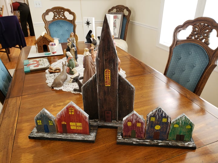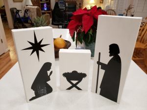 A number of years ago, Tooele City, where I have worked for 28 years, began to host craft workshops for the locals. A color flyer showed the projects, often holiday themed, and we could order them online. On the appointed evening, we gathered to collect our crafts, mostly preassembled, to paint and decorate them. Several times I took one of my children for a crafting date—Hyrum made a small sledge. I have made snowmen, scare crows, pumpkins, pilgrims, and Easter bunnies. Often more than 50 people would come—and I was always the only man there! Covid-19 shut the program down temporarily, but then it resumed, with the public picking up their projects from city hall, and taking them home to finish. This Christmas season, I ordered a winter village scene (pictured above), which my daughter Laura and I painted during her short trip from Houston. Mom ordered a wood block nativity set (pictured below). These crafts have been an important activity for me, for the chance to socialize with nice people, and to exercise what little artistic inclination I have—not to mention having fun holiday decorations to exhibit on the front porch or on the dining room table. I appreciate my town for providing this enriching quality-of-life activity, and for finding a way around a pandemic to keep the program going.