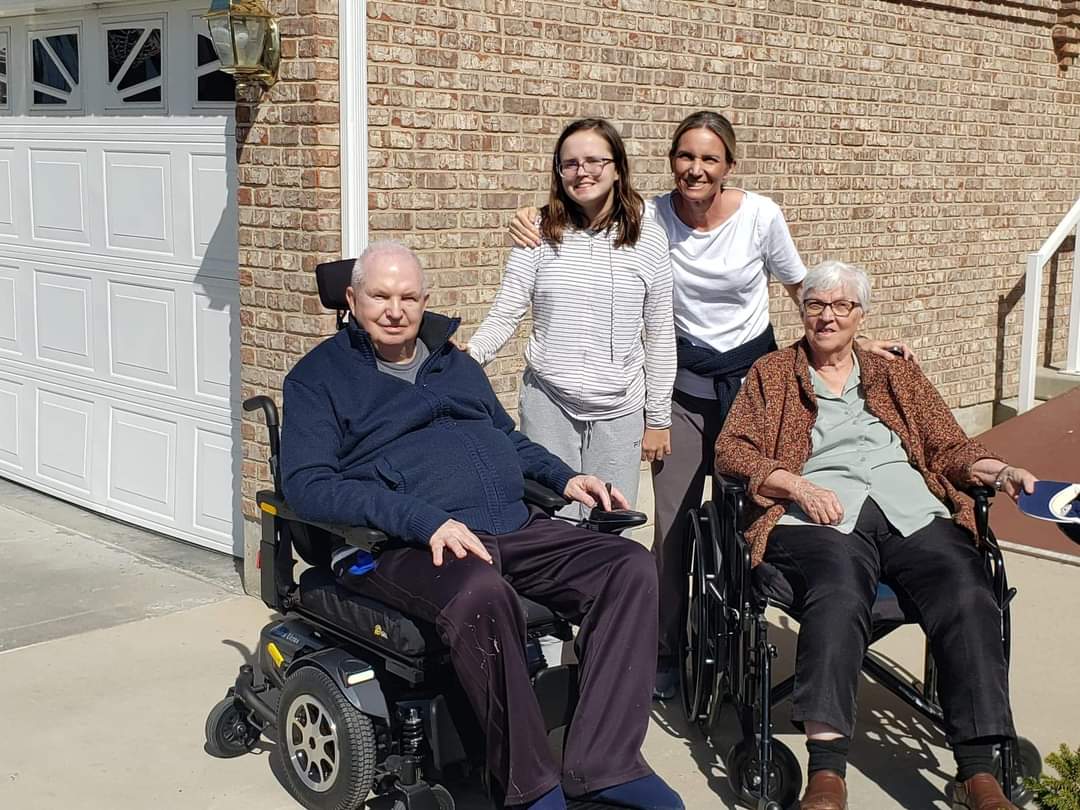 Mom startled me with a sharp rap-rap on the door of my home office, where I sat focused on my laptop screen, lost in classic rock. She cried and squeaked out her Sunday afternoon plea for me to push her for a walk around the block. I detest being started, and reacted involuntarily harshly. “I don’t think it will rain,” she hoped. Thunderclouds thickened and lighting sheeted over the neighborhood—and the rain began to fall. With each passing car, I thought, They must think I’m such a moron for taking my parents in their wheelchairs in the rain. But we actually loved the gentle shower. Mom tilted her head back and spread her arms wide to the sky. All three of us wondered if I would be struck by lightning. In the moment, I didn’t care. Returning home, I saw that the porch lights were on, three hours before sundown. With such irritation, I have been snapping the porch lights off, for months. Why does she turn the lights on so early every day, I finally asked her. “I turn them on for you, to welcome you home from work.” Finally I saw the early-afternoon porch lights for what they were: a mother’s welcome home to her little boy who has been away all day. I such a heel, I thought. A moron and a heel. Before situating Dad back into his recliner, I studied the multicompartmentalized cushion he sits on, designed to avoid pressure sores. The cushion had flattened over the months. Mom watched me intently as I tried and failed to use the tire pump, the bike pump, and the ball pump, struggling to inflate the cushion. The stem closed with clockwise turn, but by the time I quickly closed the stem, the cushion had lost all my hard-blown air. I sat on a stool with the stem between my teeth, still blowing, and spinning the cushion around to close the stem. “Thanks for doing that, Roger. I have a pressure sore on my butt, and a full cushion should help.”