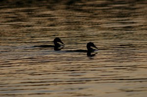 Ducks, on the other hand, definitely don’t peck. In fact, their heads remain practically motionless while they feed. The head merely points the bill, which opens and shuts with remarkable speed, as if plugged into a vibrator. My slow eyes perceive a vague blur as bills pulverize a strand of straw into straw-dust.
