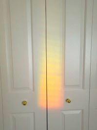 That morning I worked like the careful assassin who leaves no trace at the bloody crime scene, with the walls and floors scrubbed and sanitized, the clothing rinsed and washed (and sometimes thrown away), the washing machine sterilized with hot bleachy soapy water, the trash deposited in a distant dumpster, a squirt of Febreze. No one would ever know the bathroom was anything more than a bathroom and not a crime scene. Back in his recliner, Dad lamented his nighttime desperation for his children and grandchildren—he had prayed all night for their protection and triumph over tragedy. What can he do, he asked, but trust in the God he loves? Desperation for the same children, my children, worries me at night, too, and during the day, too, and what can I do but toil and trust? But last night I worried about the deer plucking my mum blossoms and nibling at the arborvitae, and I braced myself, shivering, for the stink of putrescent eggs sprayed liberally. In the kitchen, the warm slimy aroma of raw onions rises in moist billows, roiling the contents of my stomach, which never sees raw onions. Another trip to the trash. I shiver again in the quick darkness and chill of the moon crossing before the sun, the fusion globe a mere crescent in my eclipse glasses—but even ten percent of the sun’s surface blinds without the dark plastic. How fascinating that the rocky moon can be precisely the size and the arc to neatly eclipse the giant gaseous sun to reveal the coronal “ring of fire.” Home from work, I found Dad in his chair with only his red velvet throw over his legs. “Your dad had an unfortunate accident,” Mom announced, matter-of-fact, and I braced for a crime scene cleaning. But the “accident” was merely that he had fallen asleep with his icy glass of Coke Zero in his hand, which had slowly tipped in his slumber until it spilled fully into his lap and soaked his pants and his undergarments and his sitting pillow and his chair and his No. 1 Ladies Detective Agency books, now drying wrinkled in a row. “He was so upset!” Mom grinned. Yes, an unfortunate accident, but one we can handle, anytime.