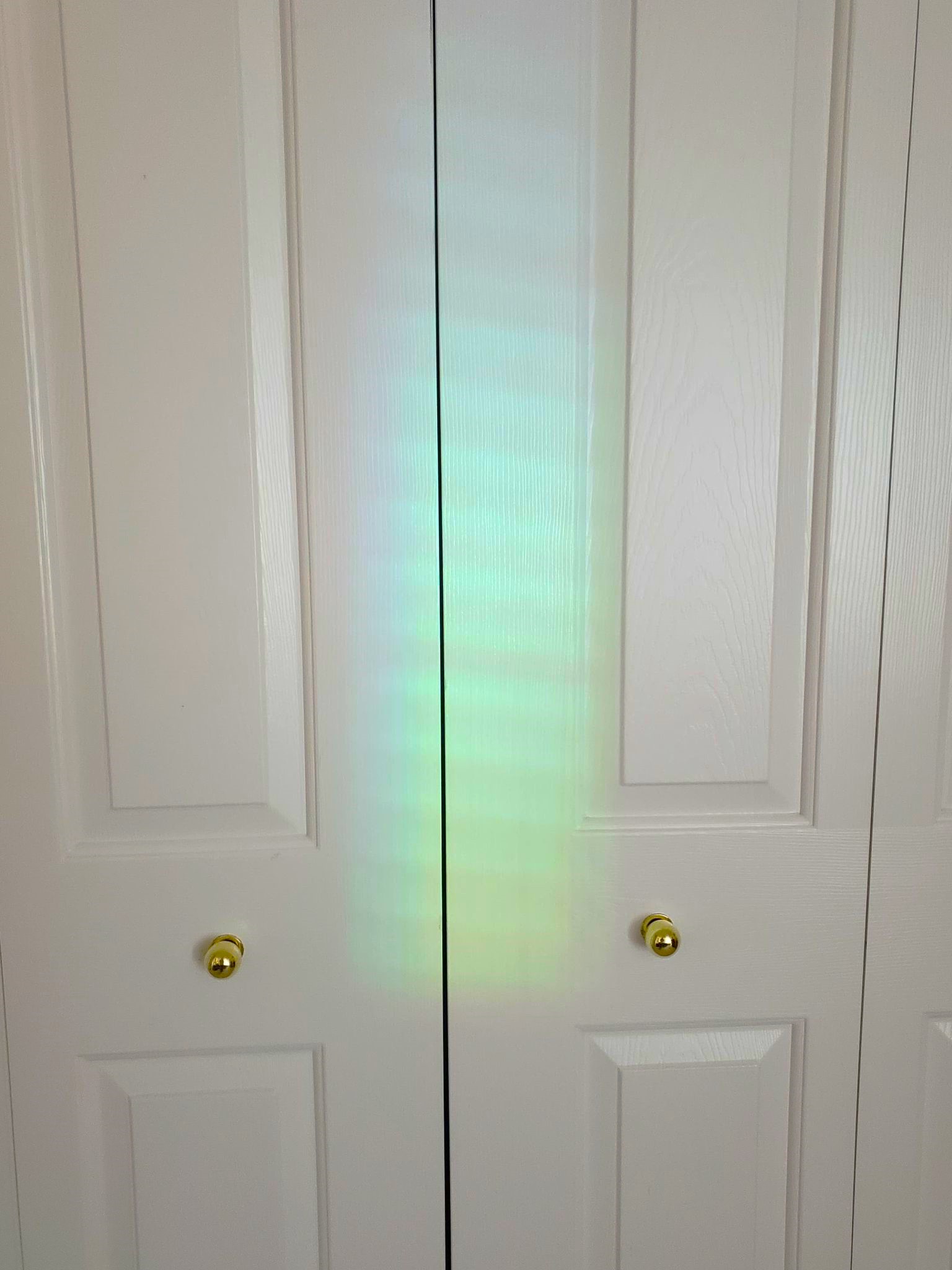 (Pictured below: the ceiling fan glass blade metal trim.)