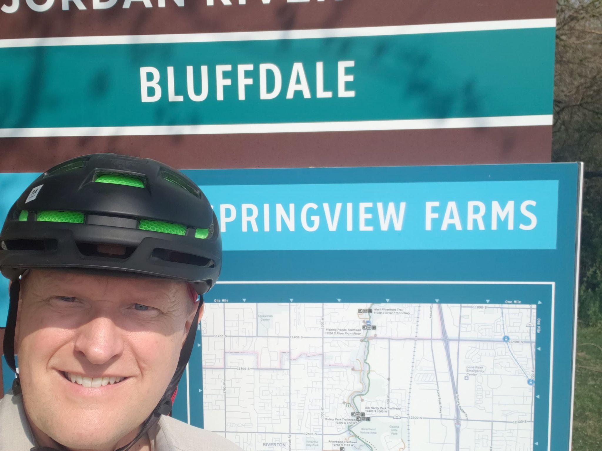 The sub-sonic motor of the stair lift rumbled almost beneath hearing—Mom was slowly being carried down the stairs—and a loud double-beep signaled her arrival. She clump-clumped around the corner into the kitchen. “Hi Mom,” I greeted her. “Good morning, my boy!” she smiled. “I’m running off for a bike ride on the Jordan River Trail. See you soon,” and I was out the door. I always feel happy on the broad paved trail by the river, and today hundreds of other people also felt happy to be on the trail. I always find humorous the greeting rituals of trail users. A nodding up of the head, or down—never both. A raise of an index finger, or four fingers, or eight, just over the handlebars. A smile or a non-smiling pursing-of-lips smile. Most cohorts, from older women to middle-aged men in full cycling gear to young couples with young children—they all offer some sort of fleeting greeting. Many wait for me to initiate the ritual, responding eagerly when I do. A small minority works hard to pretend I do not exist in order to avoid having to offer any greeting at all. Some who do this may be afraid, others absorbed, others seeking solitary quiet and not wanting to engage. One young woman stood straddling her bicycle at the crest of a high hill, looking out over the winding river and broad marshlands, glancing at me several times as I labored up the hill in low gear. When I arrived, puffing, she smiled and cheered, “You made it!” I did not flatter myself that she flirted with a man three times her age—she was simply a kind, cheerful, observant soul, encourage a fellow cyclist. Careering down the hill, I screeched to a stop before a baby garter snake sunning itself on the trail. He coiled like a cobra when I approached. My snake holding days are over, even with harmless serpents, so with a twig I tenderly tossed the critter into high grass ten feet away. Within seconds, had I not stopped, he would have been smashed several times over. Above the marsh grass, a rust-backed kestrel hovered then dove for a flying insect. Older men and women passed by me on their fat-tired e-bikes, making nary an effort, as did the youngsters on motorized scooters. I tend to judge others by own standard: I was out there to push myself at speed down the trail, and to enjoy the wind in my face and the springtime nature flashing by, and I judged others for their lazily allowing the motors to do all the work. I knew my judgment was misguided, of course: these good people all had their own motives for being on the trail: enjoyment; relaxation; nature; sociality; enjoying the wind in their faces. And then there were those perfectly-physiqued specimens jogging completely under their own power, next to whom, with my wheels and gears and sprockets, I was the loafer. I decided to admire them all for knowing what they wanted and doing it with a nod or a smile or a wave. Seventy-eight city blocks and one hour later, my thigh muscles burning, I returned to my car, still unconnected despite hundreds of subtle salutations. I felt disappointingly unaltered. But the river-front ride had indeed changed me, especially through gratitude—for the pretty young woman who lauded me on—and through saving the life of a brave little snake. Dad wanted to hear all about the birds and snakes and turtles, and even the people. He loves that trail, and remembers nostalgically the days and years when he rode in his retirement, his long-career labors ended, instead enjoying the birds and snakes and turtles, the winding narrow river, the wood-planked foot bridges, the feel of speed as he pushed at his pedals, and even the people, to whom he nodded and smiled and waved. “I’m off with Mom to the grocery store,” I called to him, and he asked me not to forget the pre-cooked bacon, and said to please bring home some red geraniums for the front corner garden.