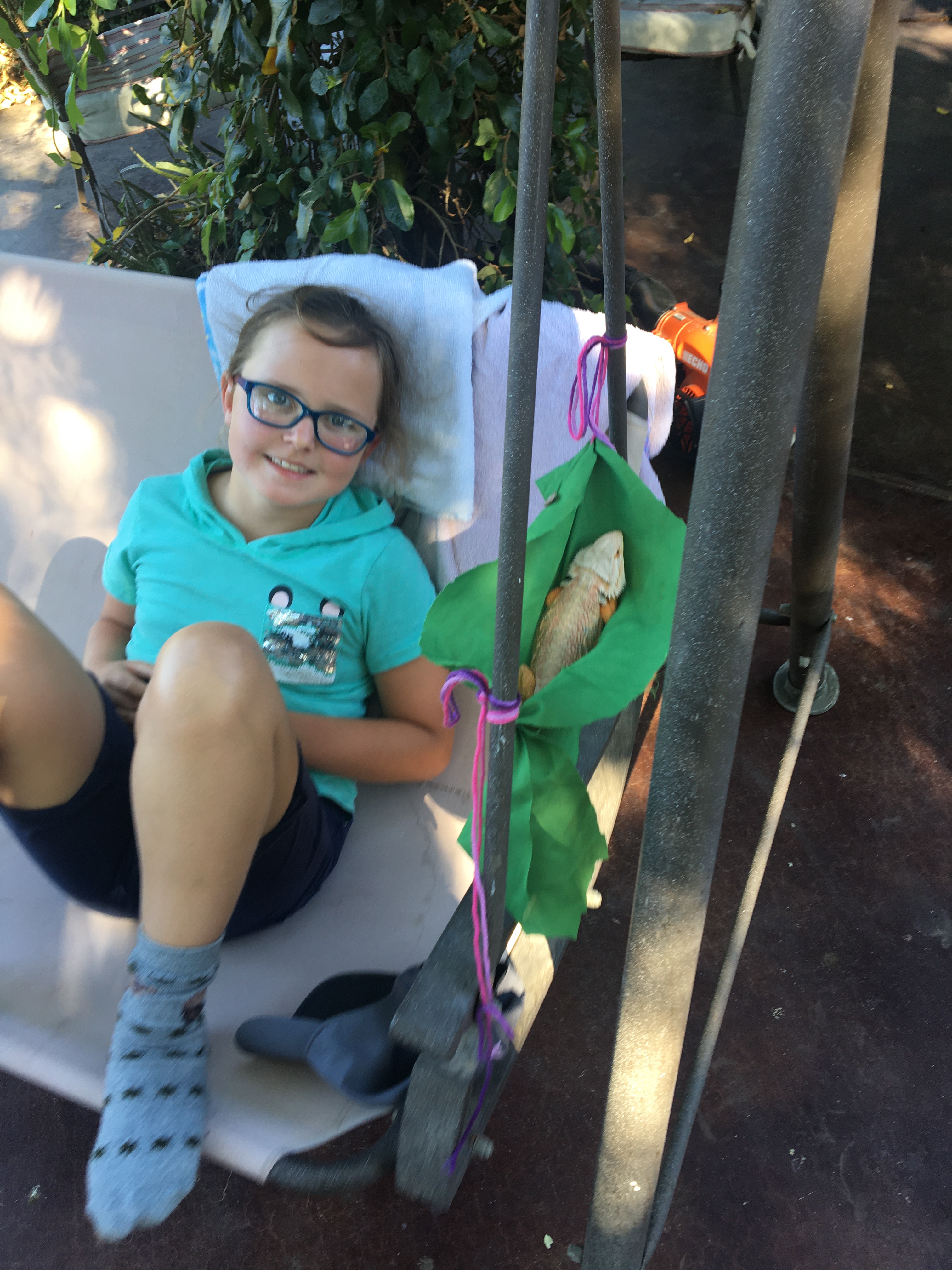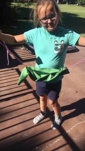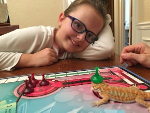 Amy loves riding the zip line her dad built in the back yard. What a thrill for to speed through the air. But this is one activity where Sunshine says, Leave me out! The whirring metallic sound of the pulley racing over the cable alarms the lizard, and is the only sound or event that has caused her to gape and frill. And that’s okay. Sunshine doesn’t have to like everything!