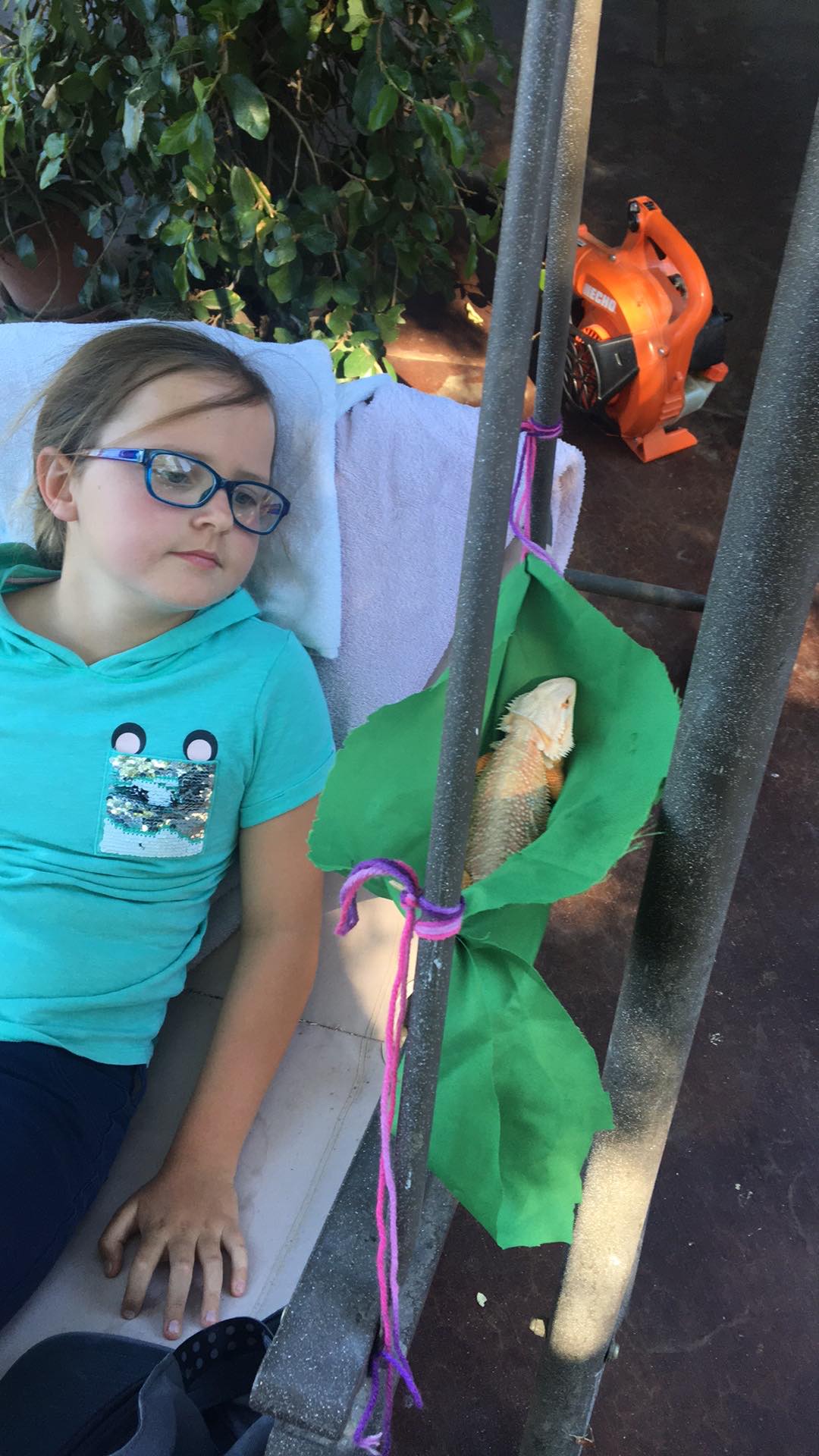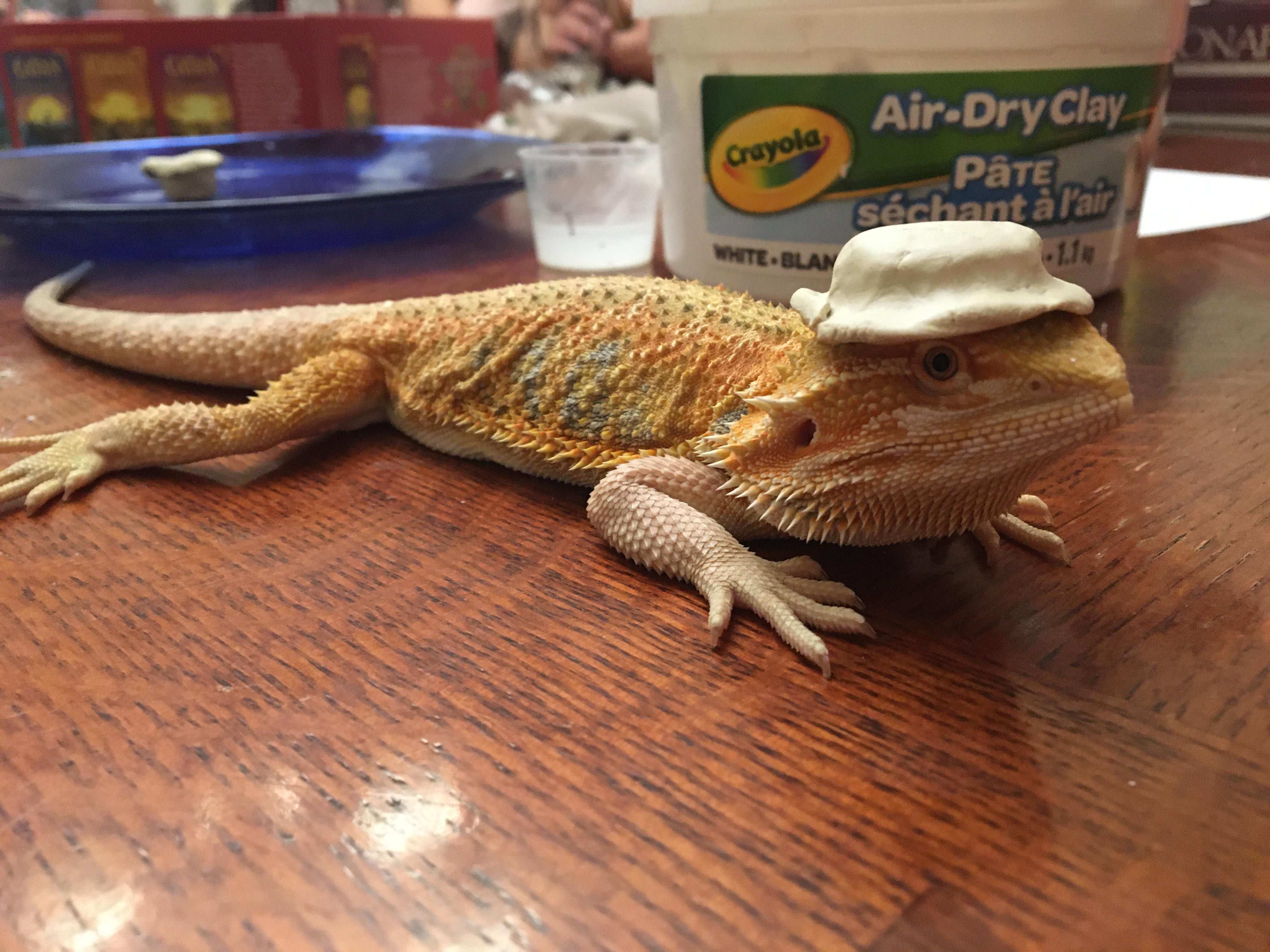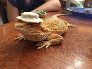 With Phoenix Arizona regularly reaching 110F in June, Amy has made sure Sunshine is prepared for the hot sun, with his own straw hat. Of course, the Bearded Dragon lizard is native to the brutally hot Australian desert. But whether Sunshine needs a hat or not, Amy is loyal and caring and looks after Sunshine’s every need.