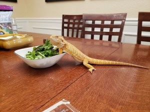 Amy has been dragonsitting while her friend visits family abroad. Luckily, the two dragons are not fighting over each other’s cockroaches, but are chill and get along. Both lizards are cute, but I admire Sunshine’s beautiful orange color.