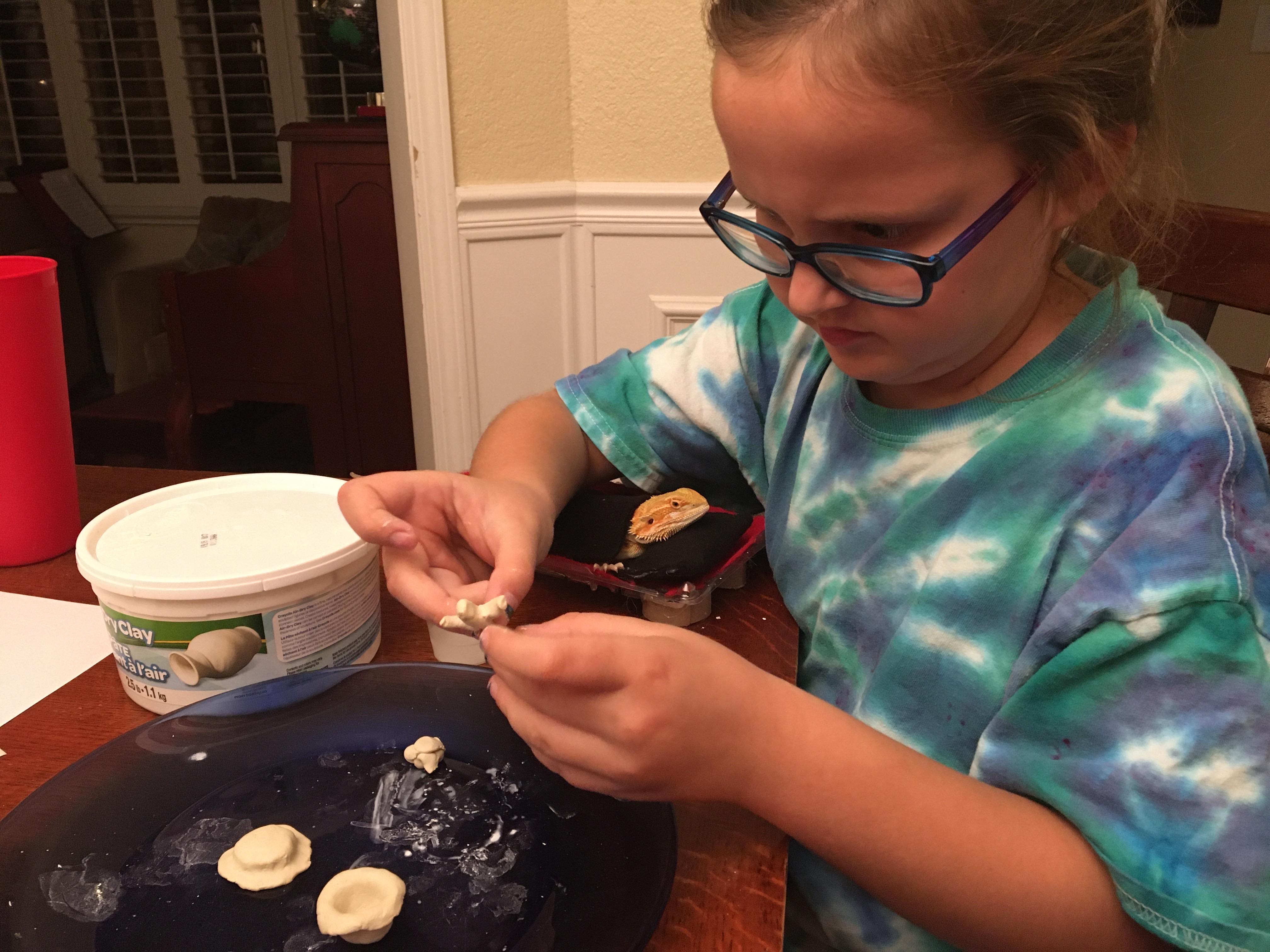 Amy is remodeling Sunshine’s apartment. Actually, this is his short-term rental, as it were, where Sunshine sometimes hangs out during the day while Amy does her homework. Comfy quarters. His main house is a large glass tank with a rope hammock and a heat lamp. No crickets jumping around in there–Sunshine ate them all!