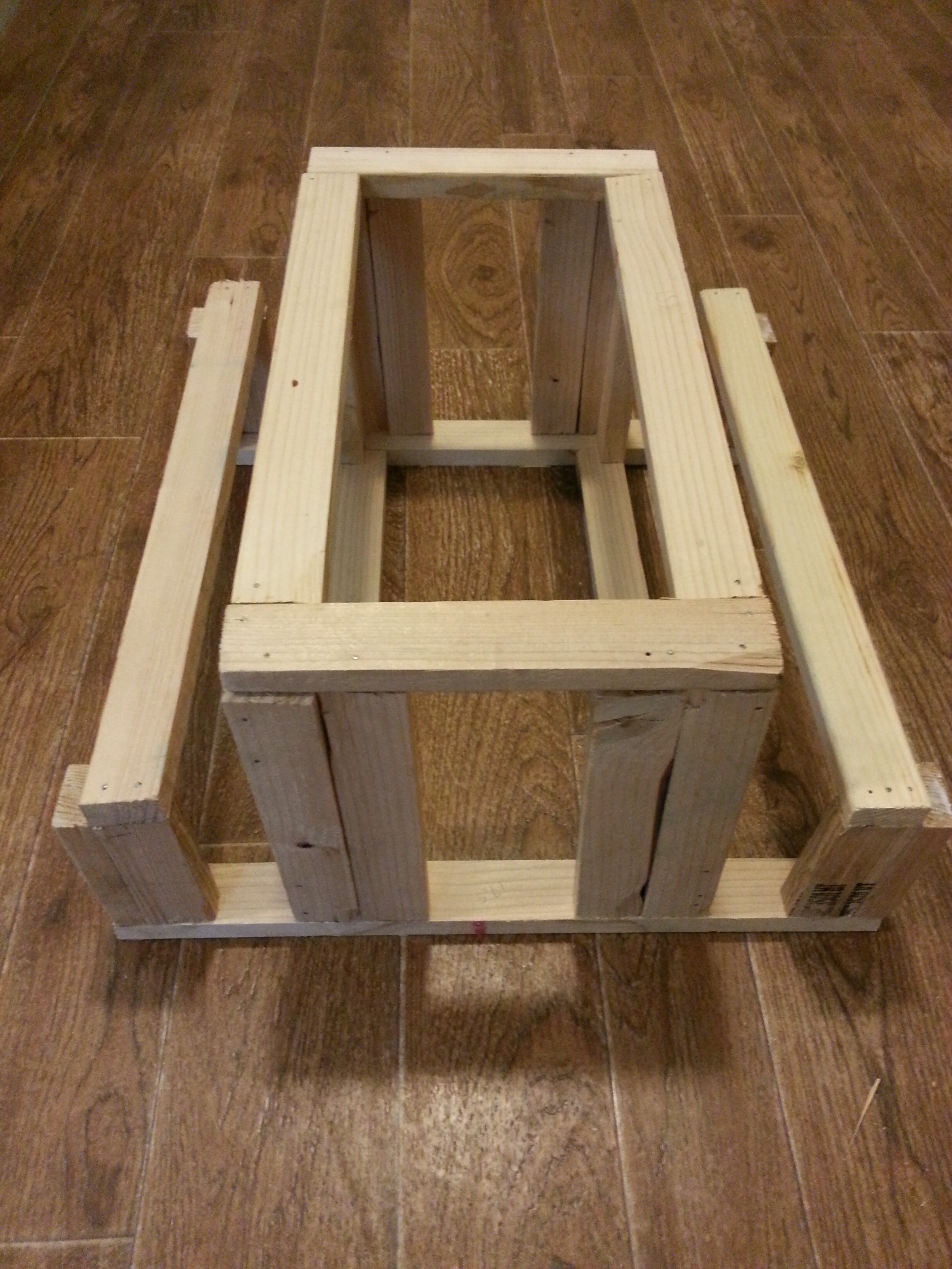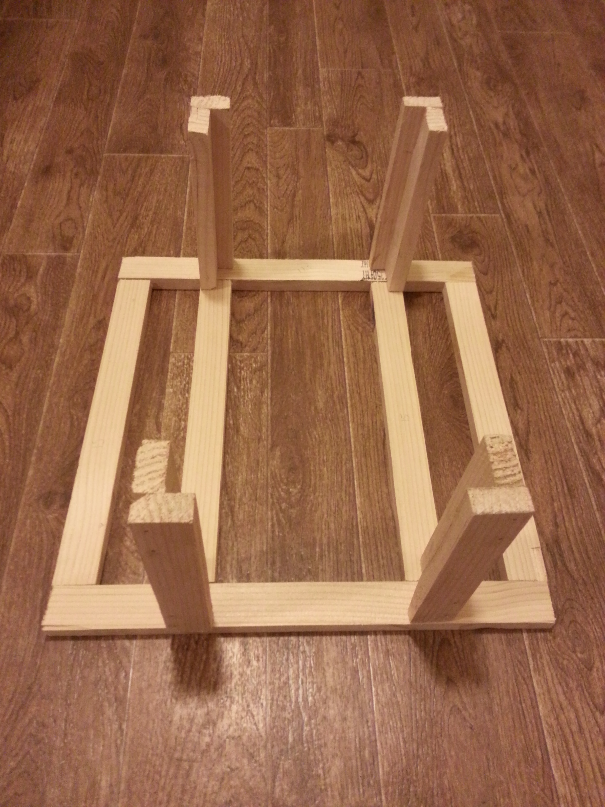 The base frame, 18″ x 18″, allowing for a two-story central main building with an attached lean-to on each side.