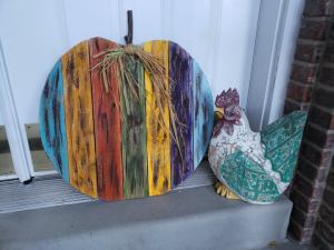 Living now with my parents, I cannot fathom the reality that we had no family gatherings with Mom and Dad for 18 months due to Covid-19. My sister Sarah grocery shopped for them every Saturday during those months. I cooked for them on occasion. We always wore masks and washed and sanitized our hands and kept our distance—no hugs (except for “air hugs”). My siblings called Mom and Dad frequently, sometimes daily. Sarah, as a speech pathologist, works at a critical care facility with people who suffer from conditions affecting their communication and swallowing. While donning head-to-toe personal protective equipment, she watched Covid rage through her patients, ending the lives of too many. My siblings and I all understood and respected that if Mom and Dad contracted Covid in their aged and weakened conditions, we likely would lose them, as so many thousands lost members of their families. To keep them safe, we did our little part to stop the spread, following all the recommended precautions, putting philosophy and politics aside in the interest of safety. Mom and Dad received their first Pfizer vaccine at a huge convention center. Hundreds of old and infirm people stood for hours in long lines, walking from station to station around the entire perimeter of the hall—fully a mile. Dad thought his cane would do, but shortly into the ordeal he confided to me, “I don’t think I’m going to make it.” I had him sit down while I ran for a wheelchair. They received their third shot this week at a local health department facility, walking 20 feet past the front door to their seats, with no wait. What a difference between the two experiences! But in all three cases, the nursing staff were so kind and pleasant and helpful. After all the family members were fully vaccinated, we began to visit again. My sister Jeanette recently came to visit from Arizona for a week. We cooked together and played Scattergories and drove to see the fall leaves in the mountain forests. And we broke out the fall crafts: wood pumpkins, a harvest-themed wreath, and a tall scarecrow. My niece Amy joined in, painting the eyes black and the nose orange. How grateful we are to be safe, healthy, and together again.