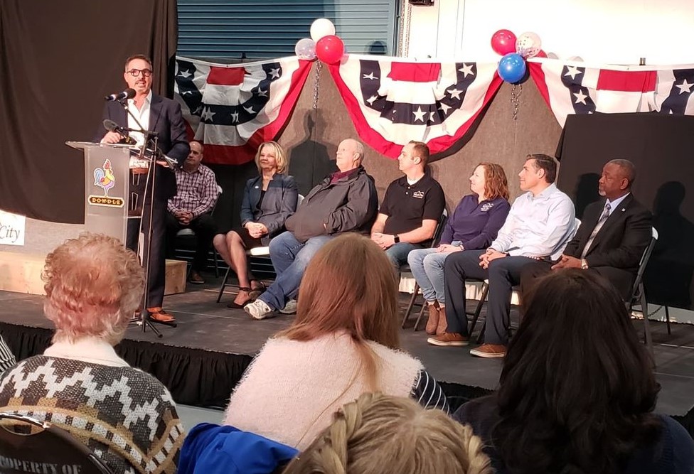 My boss, Mayor Winn, and the original Dowdle painting of Tooele City.