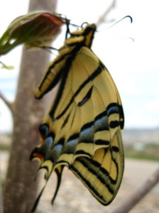 On my recent cycling and hiking forays into the local canyons, I have been graced with the presence of hundreds of gorgeous, enormous Tiger Swallowtail butterflies. Such amazing creatures! Utterly vulnerable, yet mighty and magnificent in their beauty and flight. I reached into the memory of my butterfly collecting days (God forgive me) and my first experience of seeing a butterfly wing under a microscope. That these stunning creatures can fly on flimsy wings astonishes me. They embody such a rare combination: beauty and strength and humility. With no worry for their future, with no thought of the impossibility of them against the world, they fly and fly, in spite of the skeptic. This poem grasps at the metaphor of a butterfly’s flight to contemplate the concepts of beauty, introspection, the flight of the human soul, and the finding of hope, faith, and trust in this life. I hope you enjoy it.
