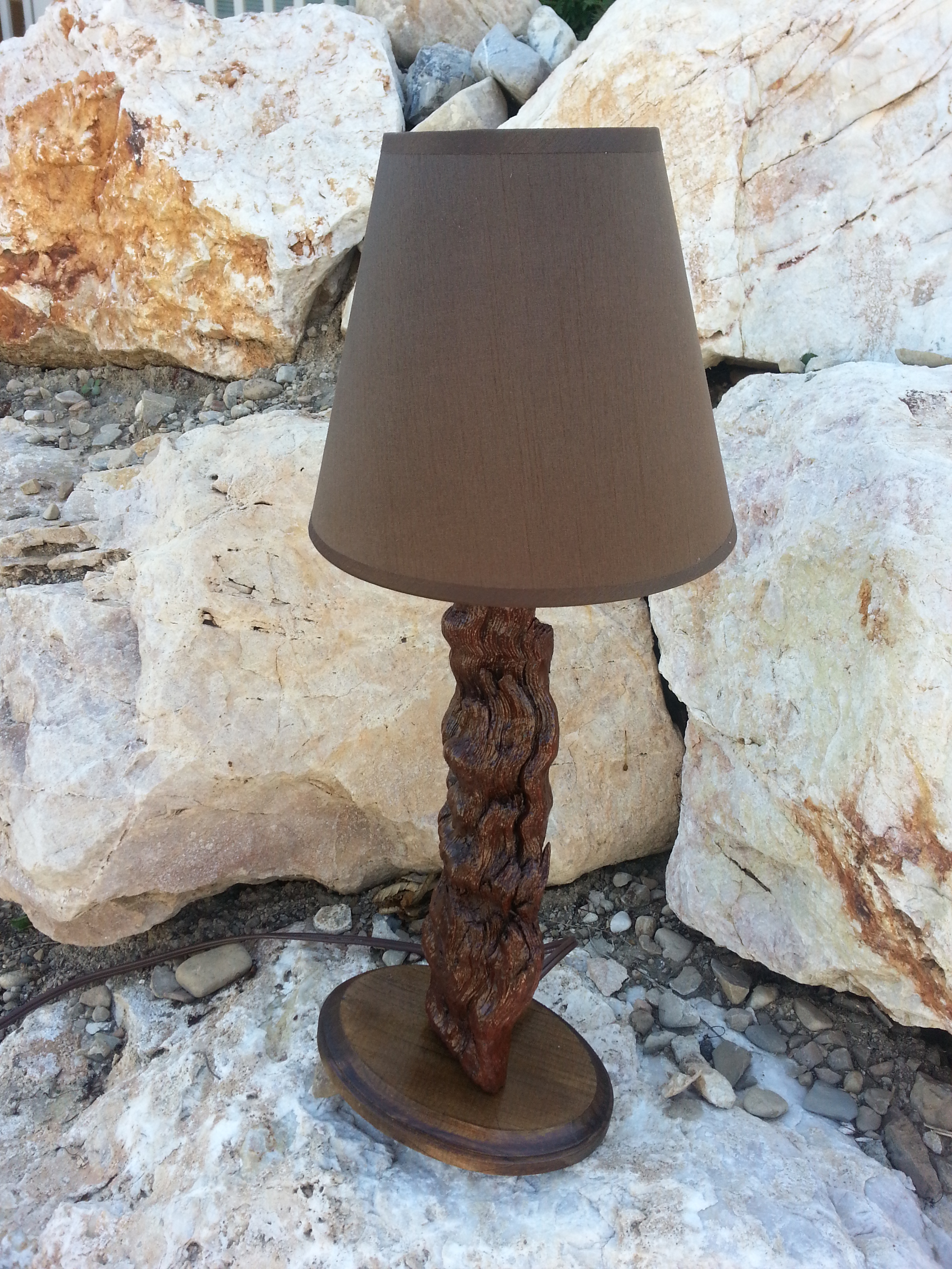 Hyrum (14) and I have worked on Dolphin for the better part of a year. This lamp began as an unassuming piece of weathered drift wood, distinguished by its beaver chew marks at both ends.
