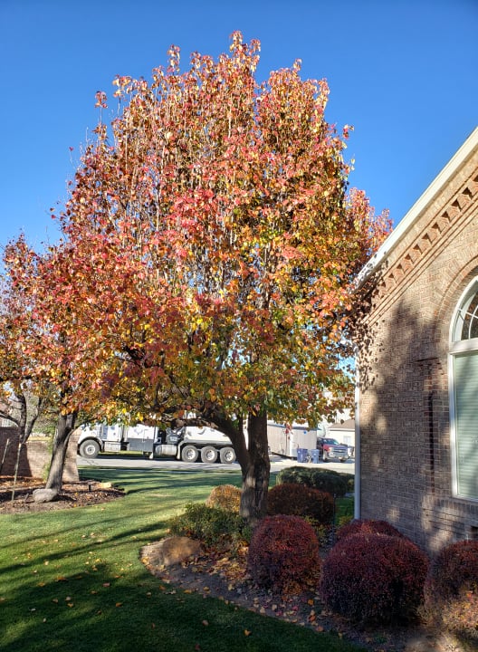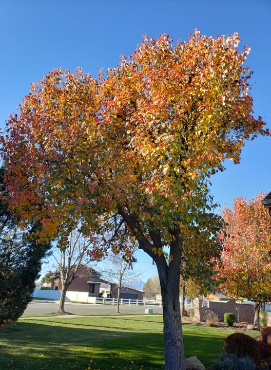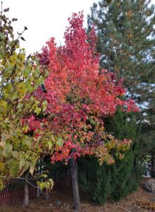 The best leaf rakers Mom and Dad had for our New Jersey yard were us children—six of us. (Mom and Dad helped, of course.) With half an acre to rake, we got after it, making huge piles of walnut, willow, oak, sumac, and maple leaves to jump and roll around in, before we piled them in the garden for compost. These days, Dad does not bother with rakes, except to pull leaves out of the bushes and tight corners. Instead, he mounts his riding mower and sucks up the maple and sweetgum and beautiful red pear leaves into the two rear-mounted canvas bags. This technique saves Dad from the impossibly fatiguing task of raking, and gives him the pleasure of riding his mower long into the cold season, when the grass has stopped growing. With no vegetable garden to nourish, the bagged leaves find their way to the landfill.
